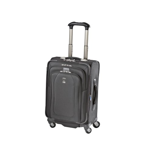 Travelpro’s crew 9 has long been the choice of flight crews and frequent travelers, the 21-inch expandable spinner is a leap forward in innovation, lightweight durability and effortless mobility, featuring larger rear wheels make spinners extra flexible, switching effortlessly from rolling upright beside you to being pulled behind, the patent-pending powerscope extension handle that minimizes wobble when fully extended, it also stops at 38” and 42,5” to ensure a comfortable roll for users of different heights, strong enough to support a tote or case, the powerscope handle has been tested over 15,000 cycles